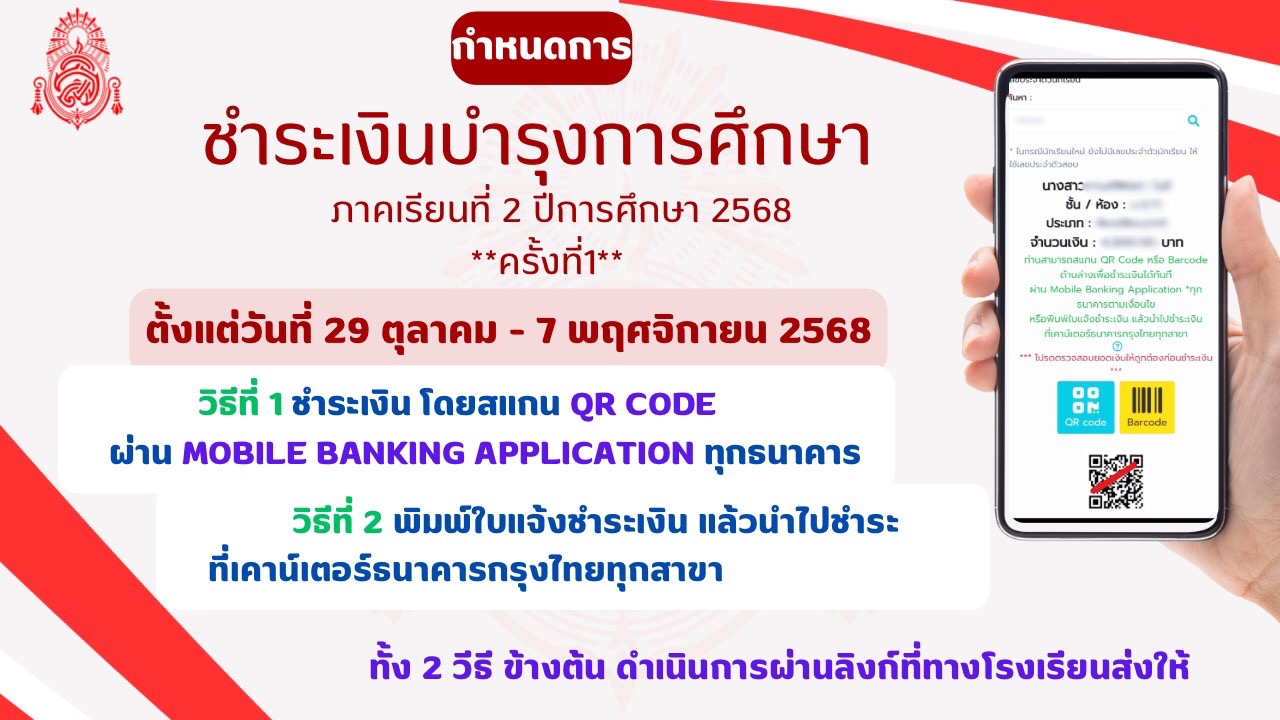 ขอแจ้งลิงก์ชำระค่าบำรุงการศึกษา ภาคเรียนที่ 2/2568