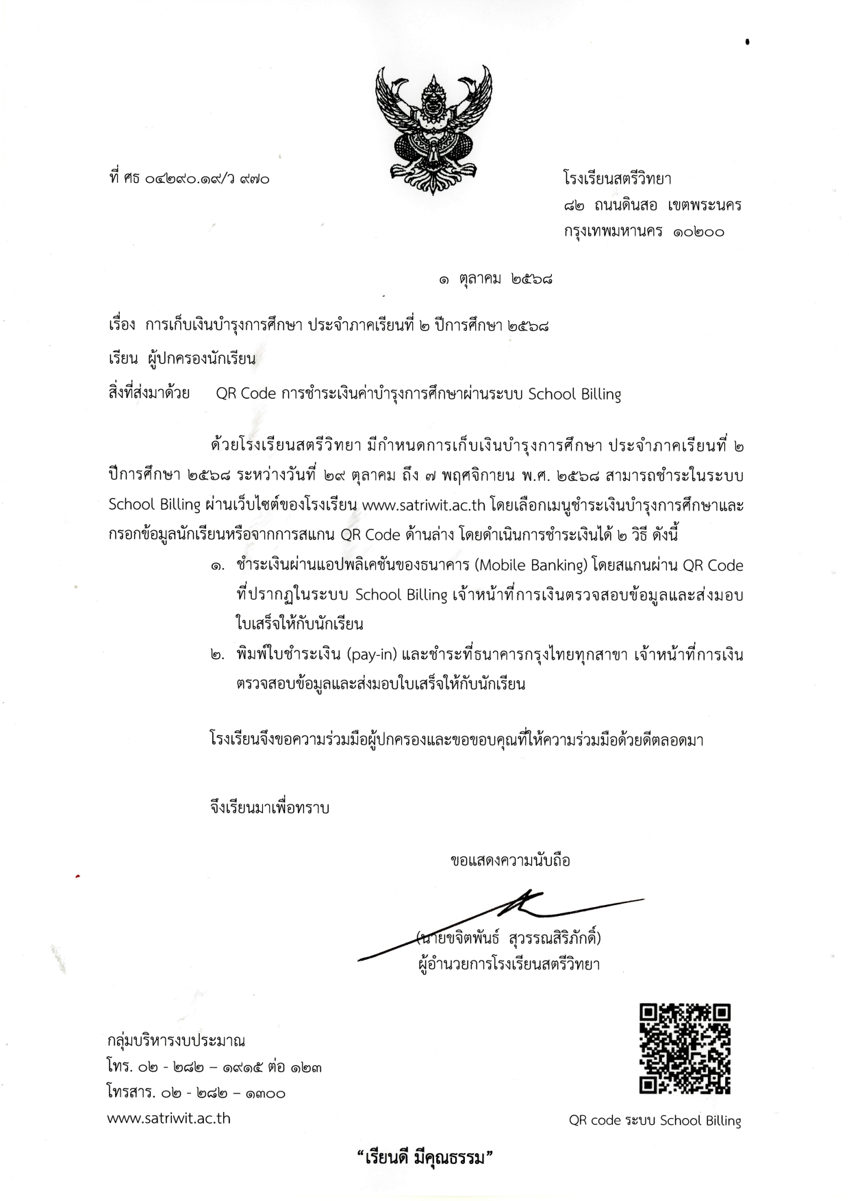 ลิงก์ชำระค่าบำรุงการศึกษาโรงเรียนสตรีวิทยา