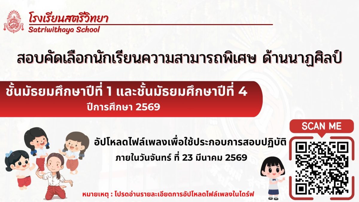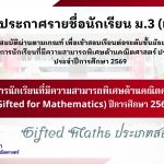 ประกาศรายชื่อนักเรียน ม.3 (เดิม) ที่มีคุณสมบัติผ่านตามเกณฑ์ เพื่อเข้าสอบเรียนต่อระดับชั้นมัธยมศึกษาปีที่ 4 โครงการนักเรียนที่มีความสามารถพิเศษด้านคณิตศาสตร์ ประเภทสอบ ประจำปีการศึกษา 2569March 19, 2026 March 22, 2026 Categories ข่าวประชาสัมพันธ์โรงเรียน Tags